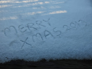 雪白的鹿兒是叮噹與大自然一起創造的作品。還記得雨雪過後,掛上樹掛的那一天,叮噹冒冷步出陽台拍照,於是陽台上印下了她的足跡,只是往後又再下了幾場小雪,足印便在厚雪下消失了。幾天放晴後,叮噹在漸漸融化的陽台白雪上寫字來聊表聖誕祝賀。怎料這些人為的動作竟與融化的白雪配合起來,成為一幅雪地鹿兒的美圖。